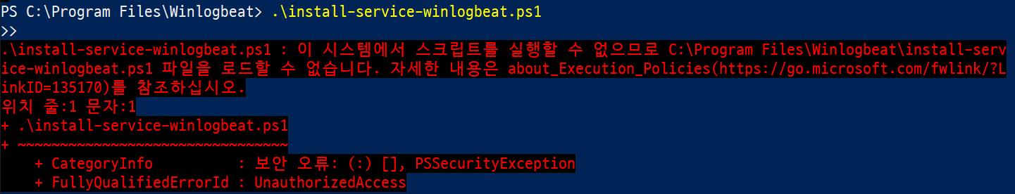 이 문제는 권한이 잠겨 있어서 그렇다. PowerShell 을 띄워서 다음 명령을 넣으면 아래와 같이 나오게 된다.