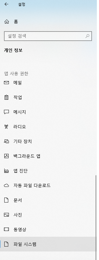3. 왼편 메뉴 상에 있는 항목 중 맨 아래에 있는 "파일 시스템"을 연다.