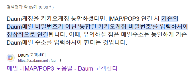 다음 메일 imap/pop3 설정 - 카카오 메일 계정 통합 후