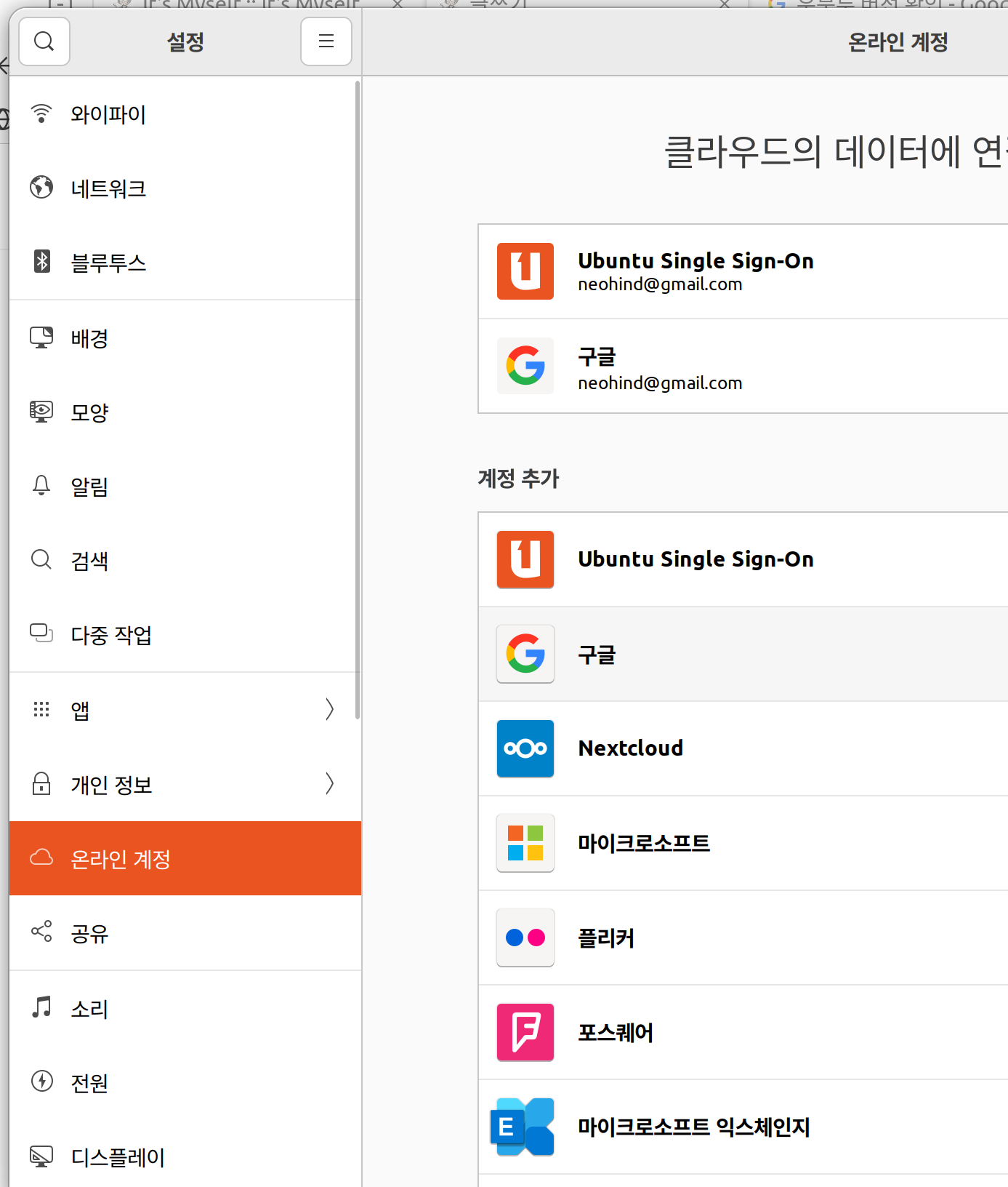 우분투에서 구글계정 로그인시 멈춤 현상
