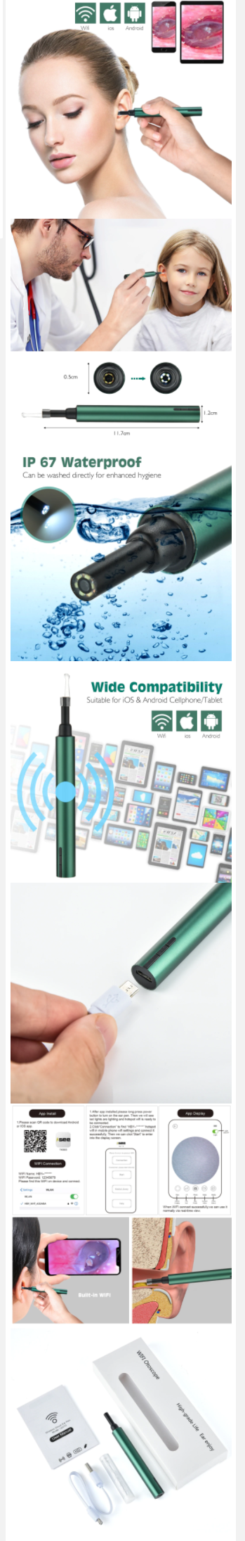 제품명은 "3.0mm Wireless WiFi Ear Pick Otoscope Camera Borescope Luminous Ear Wax Cleaning Teeth Oral Inspection Health Care 3.0/5.0MP" 이고, 한글로는 아마.. "무선 와이파이 귀 선택 검이경 카메라, 야광 귀지 청소 치아 구강 검사 건강 관리 3.9/5.0MP, 3.0mm" 일듯...