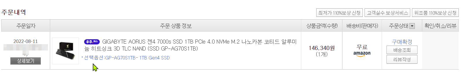 AORUS Gen4 7000s SSD 환불로 종결