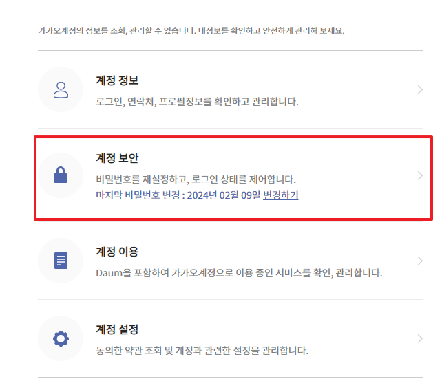들어가려면, 다시 Kakao 계정 암호를 묻는다.